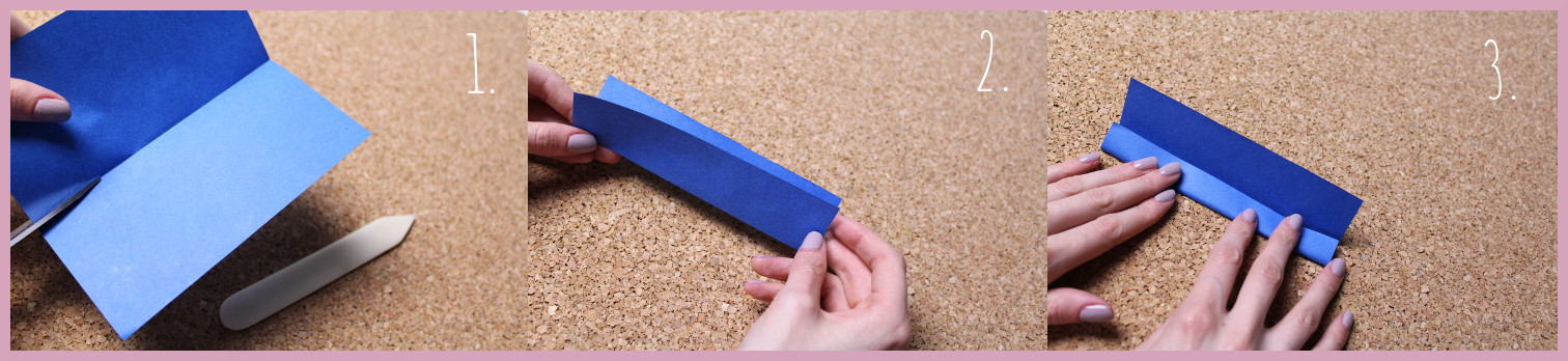 - Nun faltest Du das Blatt in der Mitte. Dabei orientierst Du Dich an der längeren Seite des Papiers.