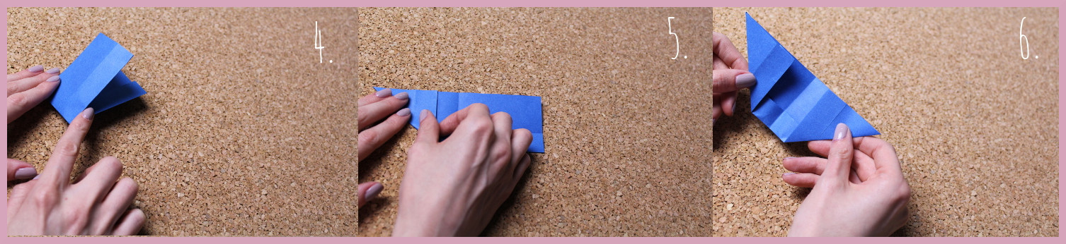 - Jetzt werden weitere kleine Dreiecke bis zur eben entstanden Linie gefaltet.