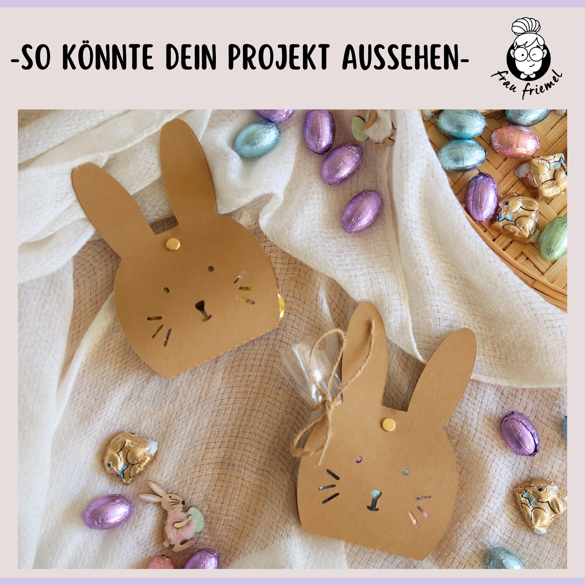 Ein Ostergeschenk in weniger als 5 Minuten? Mit dieser niedlichen Hasen-Plotterdatei ist das ganz einfach möglich. Der Osterhase eignet sich perfekt, um kleine Süßigkeiten zu verpacken und kann zudem dekorativ auf dem Tisch platziert werden. Verziere ihn mit den Namen deiner Gäste und du hast gleichzeitig eine Tischkarte und ein Gastgeschenk.