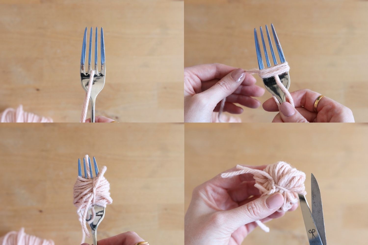 Variante 4: Pompons selber machen mit Gabel