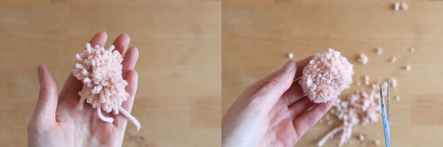 - Der Pompon muss nun noch gut in Form gebracht werden.