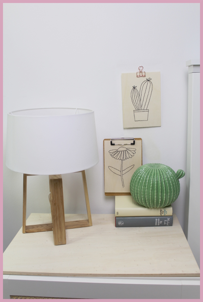 Meine gestickten Pappelholzbilder ergänzen nun unseren IKEA Besta Hack perfekt. Diesen hatten wir schon vor einigen Monaten um Deckplatten aus Pappelholz ergänzt. So passen die Bilder perfekt zum Besta Nachtschrank.
